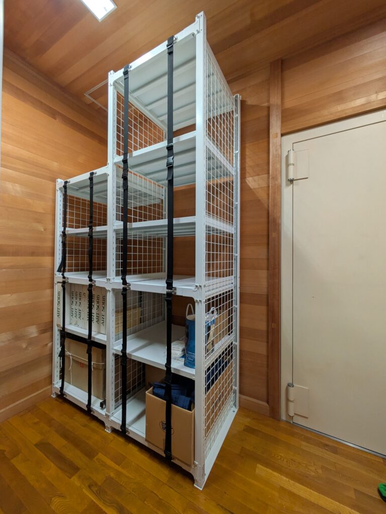 - 奥行きの拡張: 棚を3台連結し、大型作品にも対応できる広大なスペースを確保。