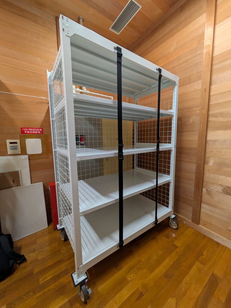 レイアウト変更を容易にするキャスター仕様と、独自の落下防止対策