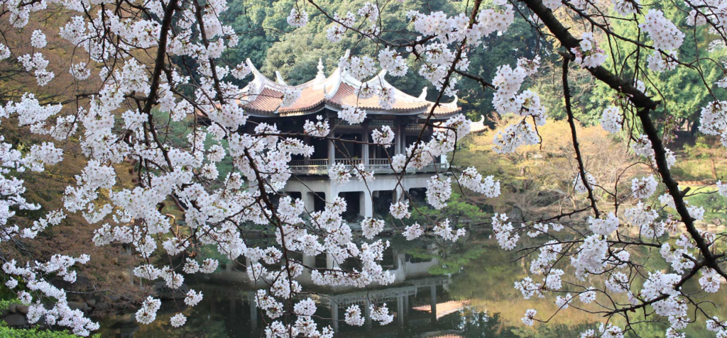 多くの海外旅行者で賑わう新宿御苑。新宿御苑の豊かな庭園や季節の風景、歴史的背景などを4か国語で案内してくれます。