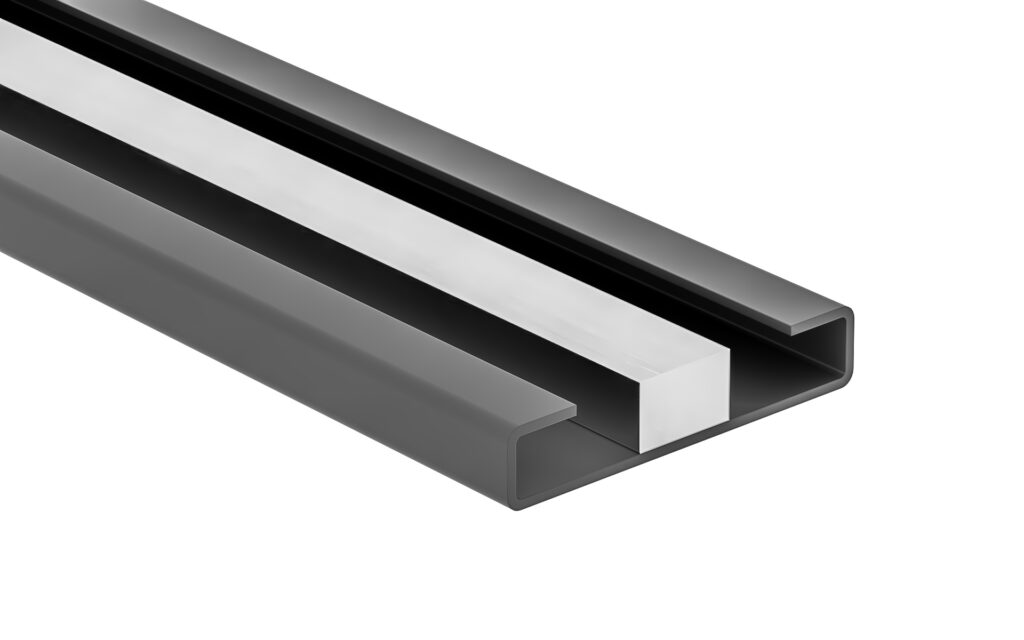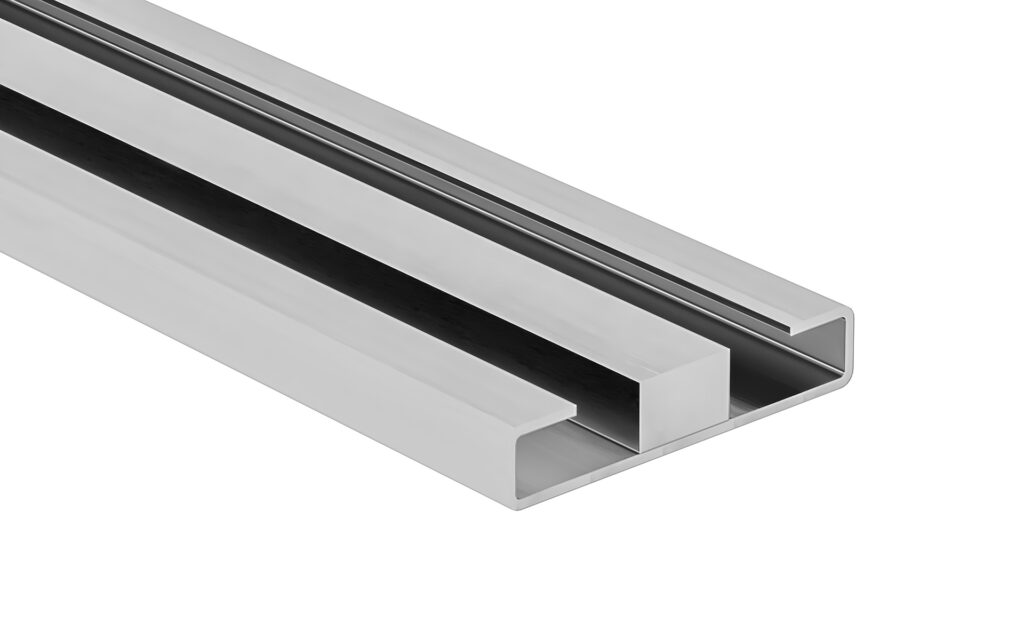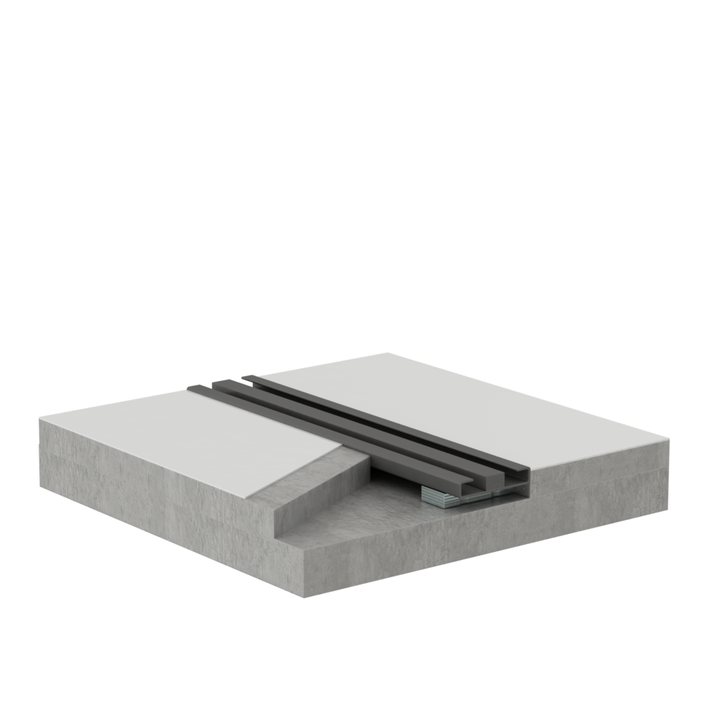 3. Embedded Type The floor is filled with mortar (or other material) to be level with the rails. This is effective for trip prevention and for securing the rail. Requires prior coordination regarding rail installation before pouring the concrete slab. As the rails will be embedded in concrete, stainless steel is recommended for rust prevention.