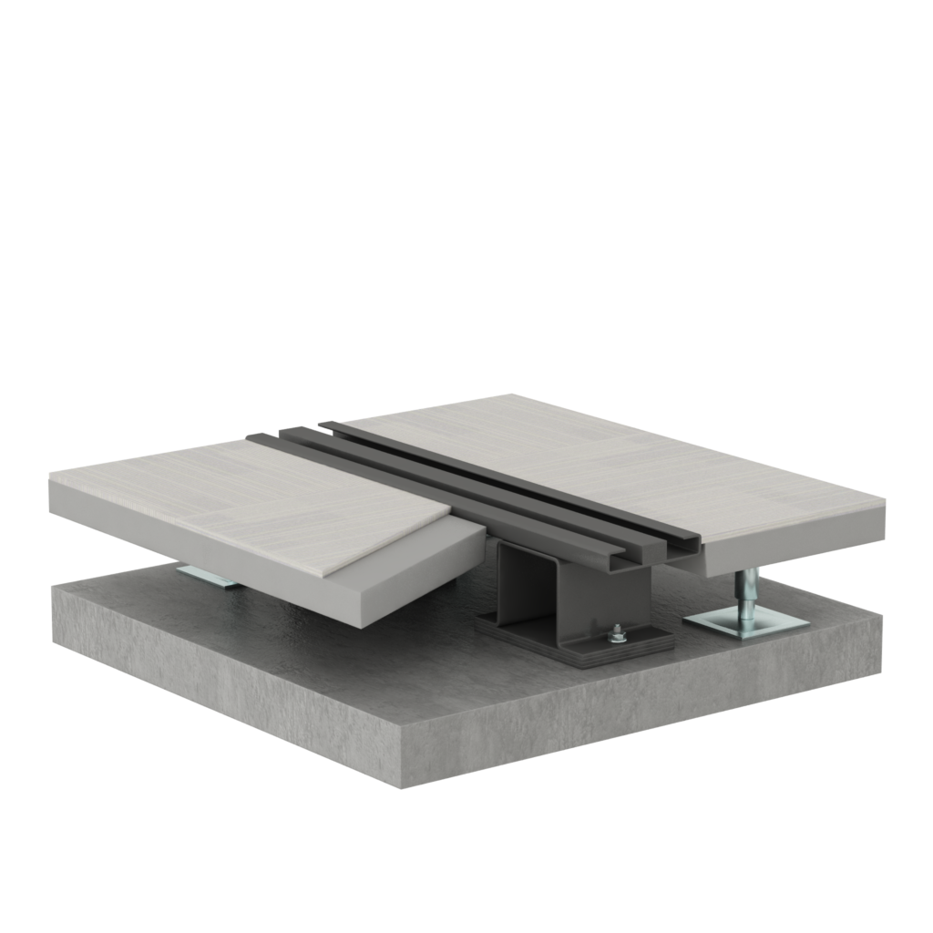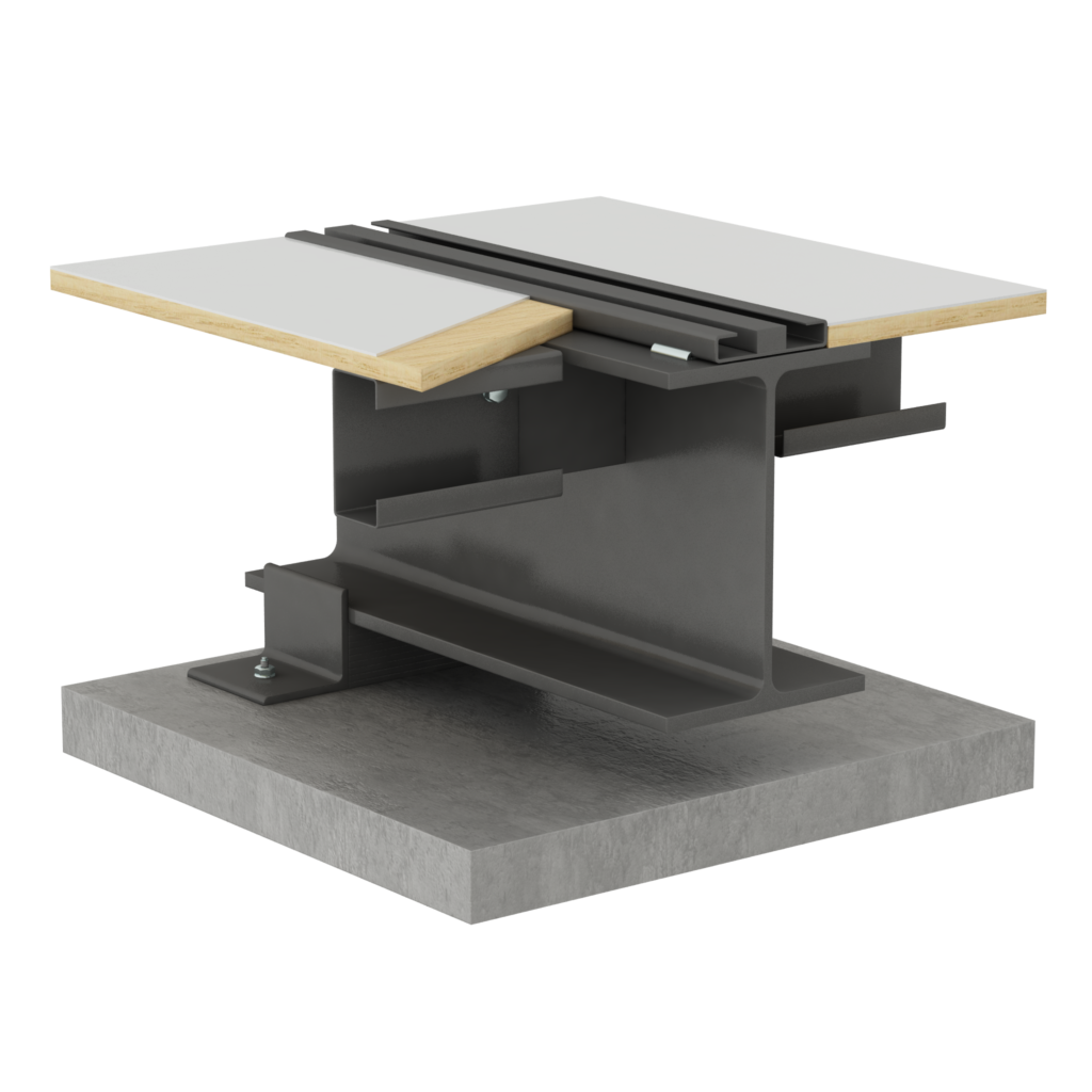 4. Raised Access Floor Type The rails are leveled to match the height of the raised access floor. For heights of 150mm or less, hat channels are used. For heights over 150mm, steel support posts are used.
