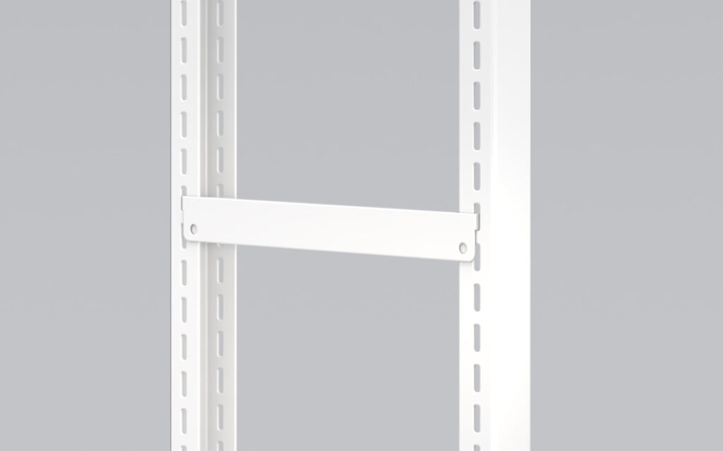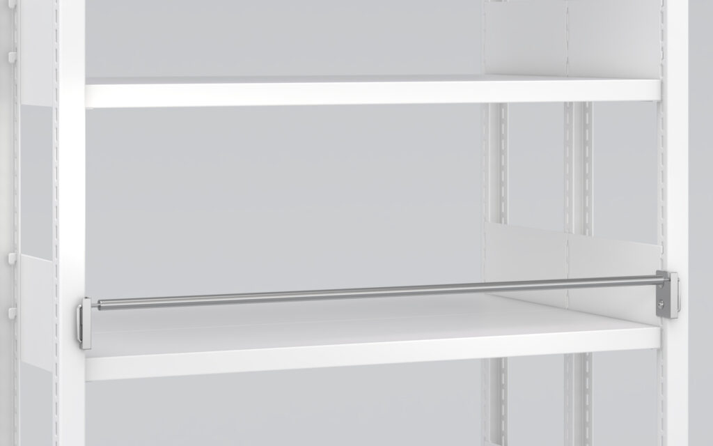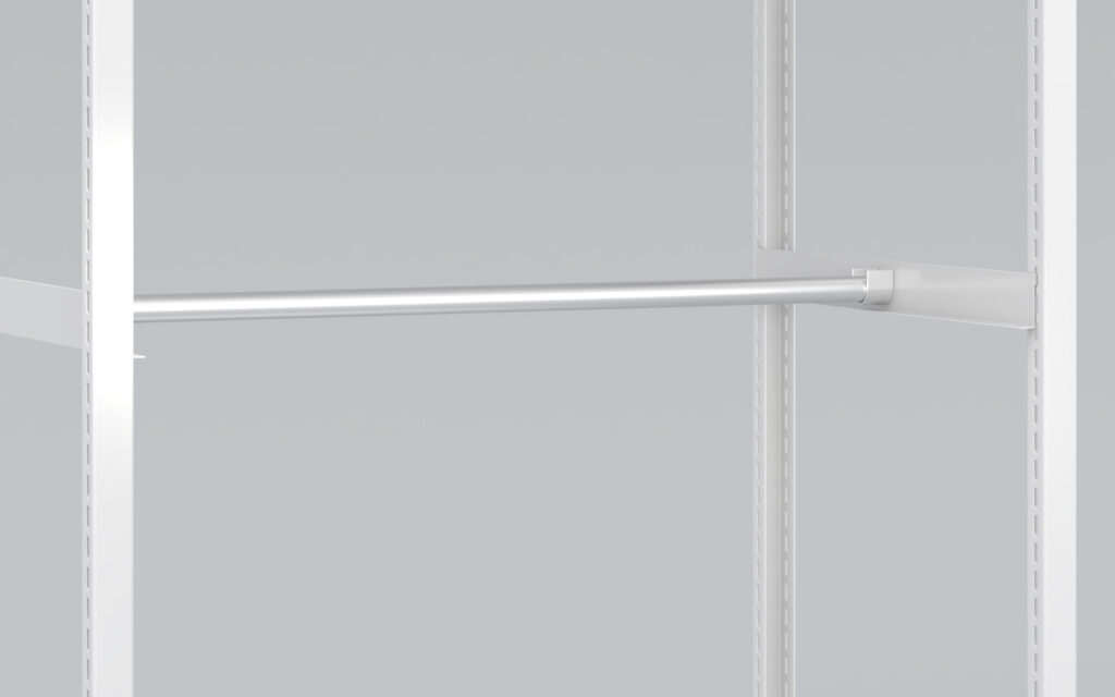 This is an upper bar for tall shelving units, designed to prevent tipping.