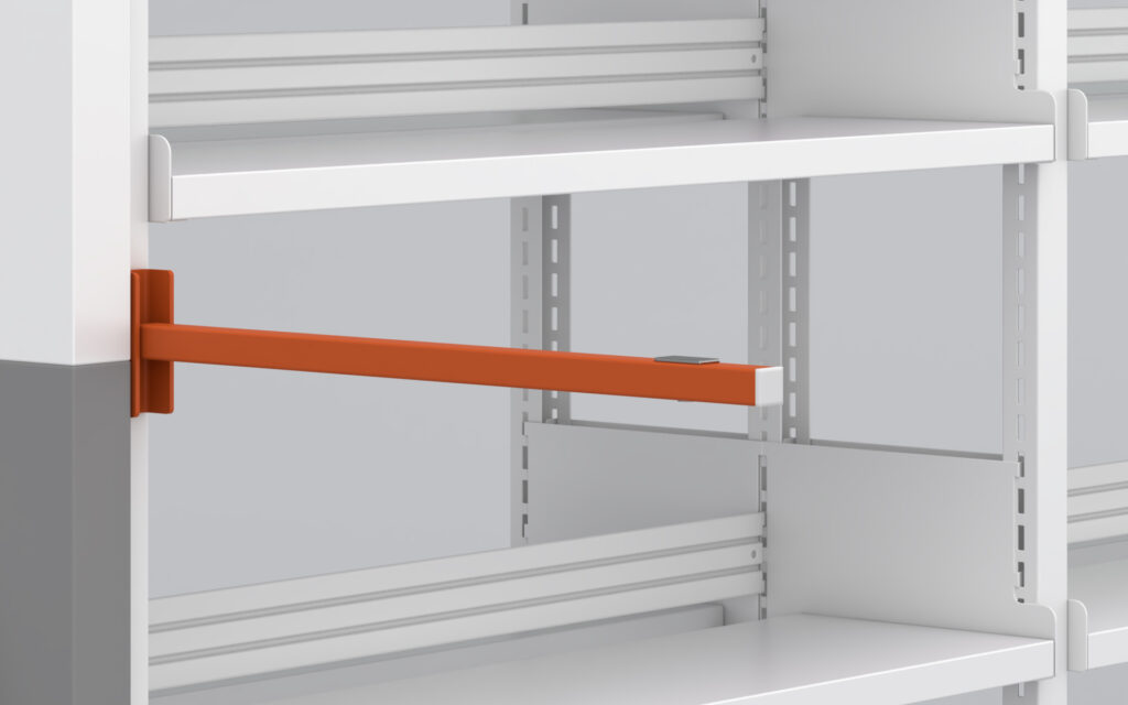 This bar is installed to ensure user safety when a mobile unit is located at the end. The bar is red for intuitive identification.