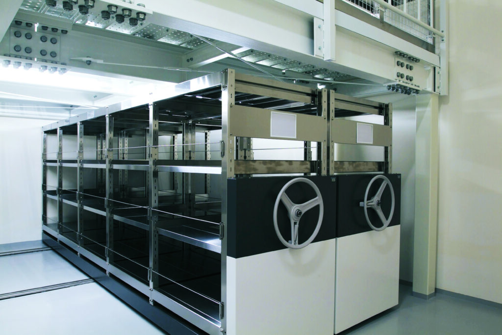 The HPZS electrical mobile shelving unit comes with seismic isolation as standard.