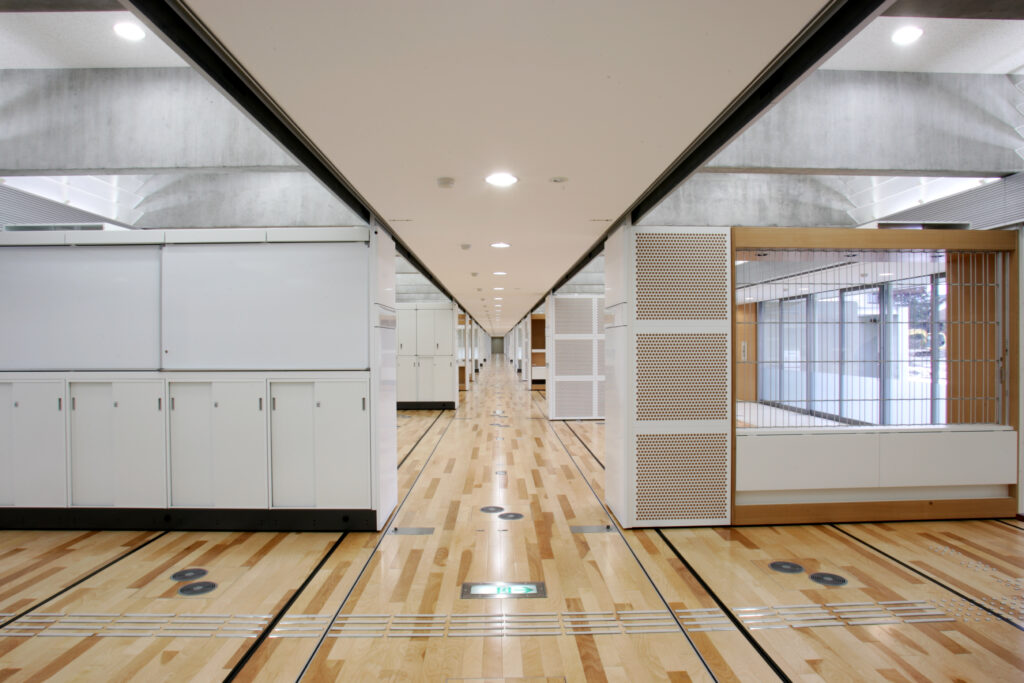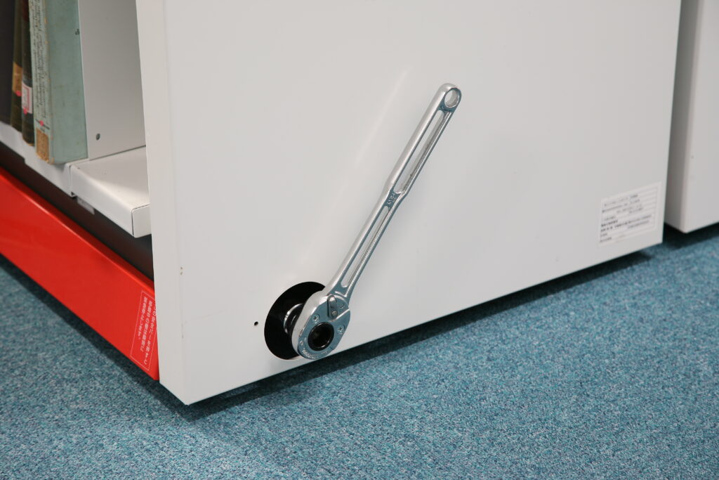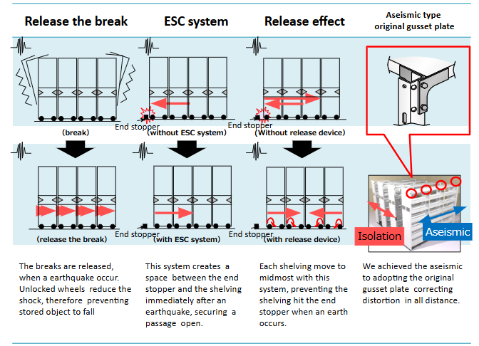 Particularly, in a public experiment observed by stakeholders from various fields, the shelving cleared the vibration test using the actual seismic wave from the Hyogo-Ken Nanbu Earthquake (as observed at the Kobe Marine Observatory) without any stored items falling. This experiment reaffirmed the safety of our seismic-isolated mobile shelving against large earthquakes.