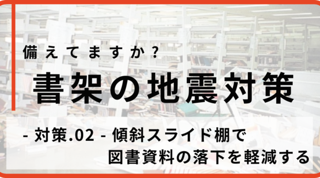 【書架の地震対策】- 対策.02 – 傾斜スライド棚で図書資料の落下を軽減する