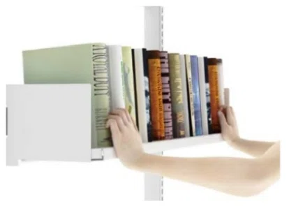 傾斜スライド棚を取り付けることで、図書資料の落下によるケガや、