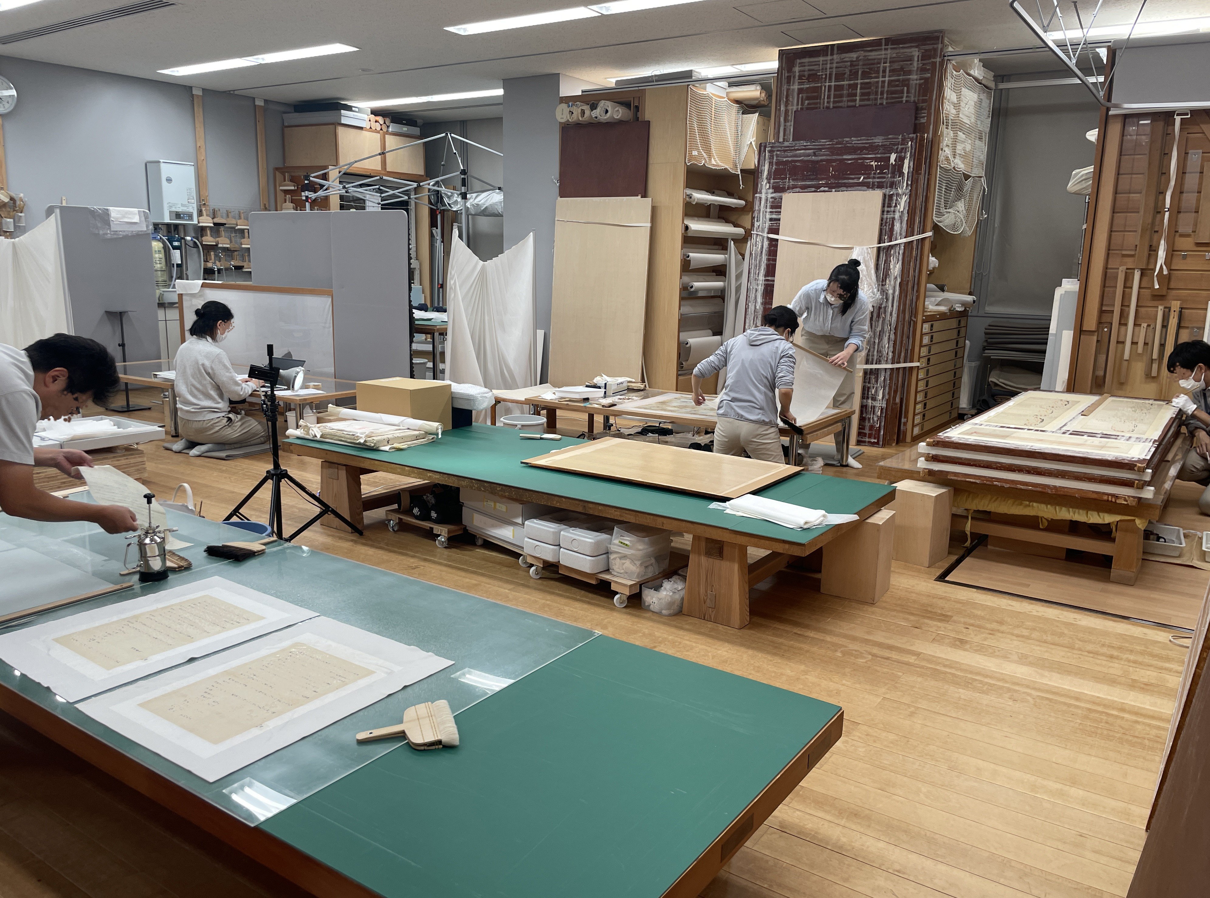私どもがこれまで培ってまいりました経験と、文化財保存修理の現場で築いてきた専門的なネットワークを活かし、貴重な文化財を未来へと受け継ぐお手伝いができましたら何よりの喜びです。とりわけ装潢分野の文化財修理は、多くの職人、技術者、さらには素材の生産者といった方々に支えられて成り立っております。私たちが日々用いている道具や材料は、いずれも文化財に直接触れるための厳しい基準を満たし、最高水準の品質を備えたものばかりです。
