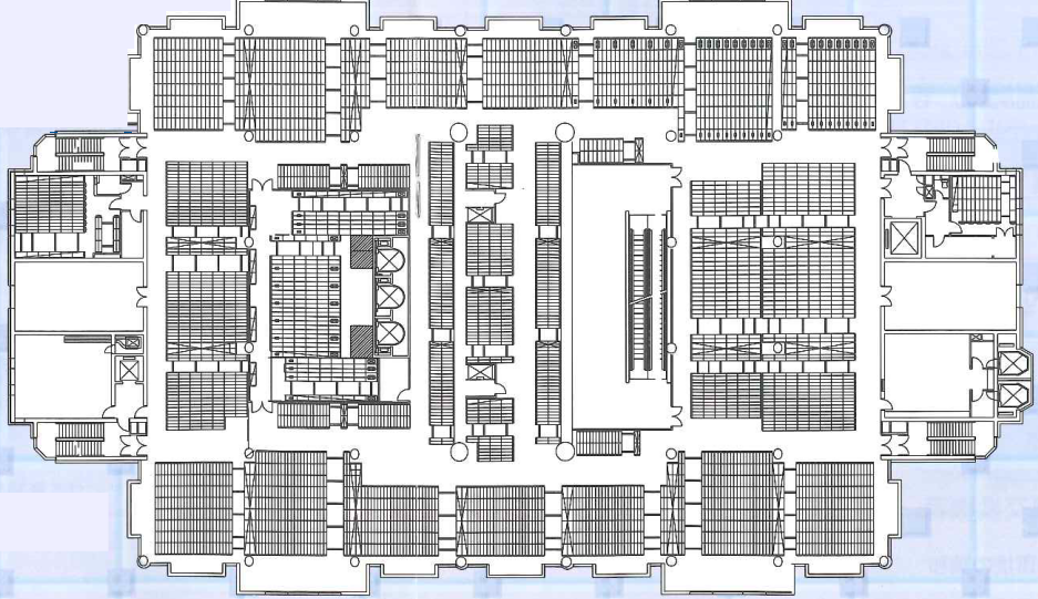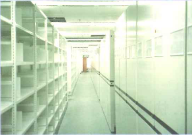 同図書館の2階から11階の各階には、弊社の丸ハンドル式移動棚KZと電子電動棚AEXが設置されている。また、モデルもKZ、ハイパークリーンシステム搭載HCZ-HCE、AEXと4モデル有り、連数も1連から10連までとまるで移動棚の展示会でも開けそうな感じである。特に中央書庫の7階はAEXで埋め尽くされている。
