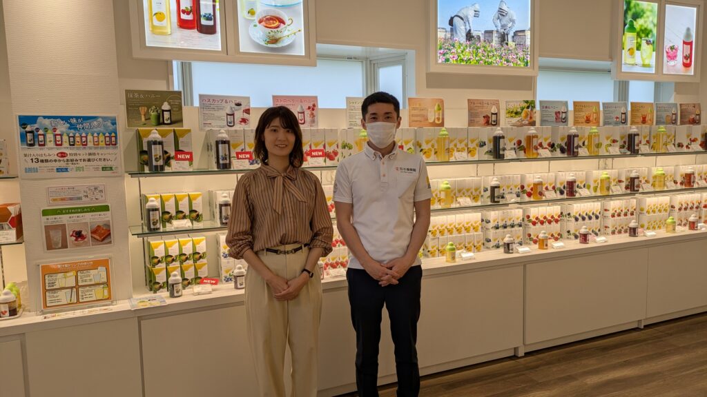江口部長・眞﨑さん:採取された蜂蜜は、熊本にある自社の工場で商品化されます。蜂蜜だけでなく、化粧品なども手掛けています。 杉養蜂園の商品の特長は、自社で一貫して生産から販売までを行うため、品質への高い信頼性があることです。販売面について、実店舗は観光地を中心に展開しています(取材時点で出店数は78店/同社webサイトより)。