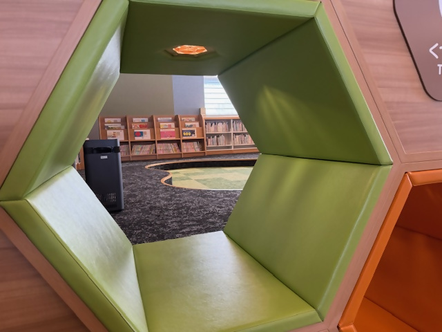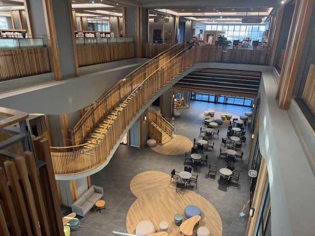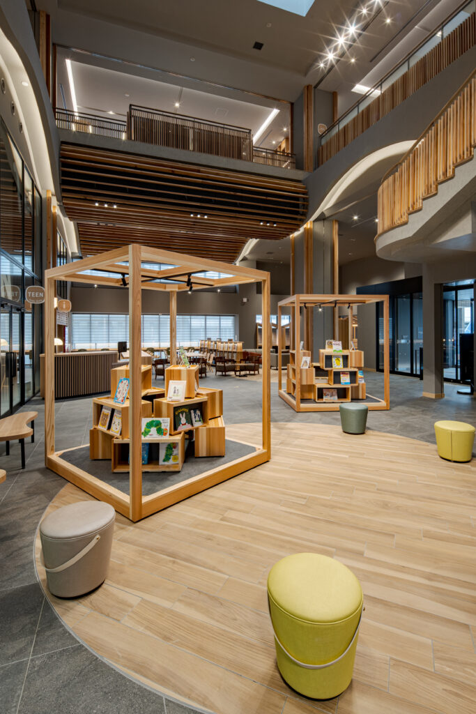 建物全体が吹き抜け構造になっていて、施設内での活動が図書館にいてもうかがえる状況になっていますね。
