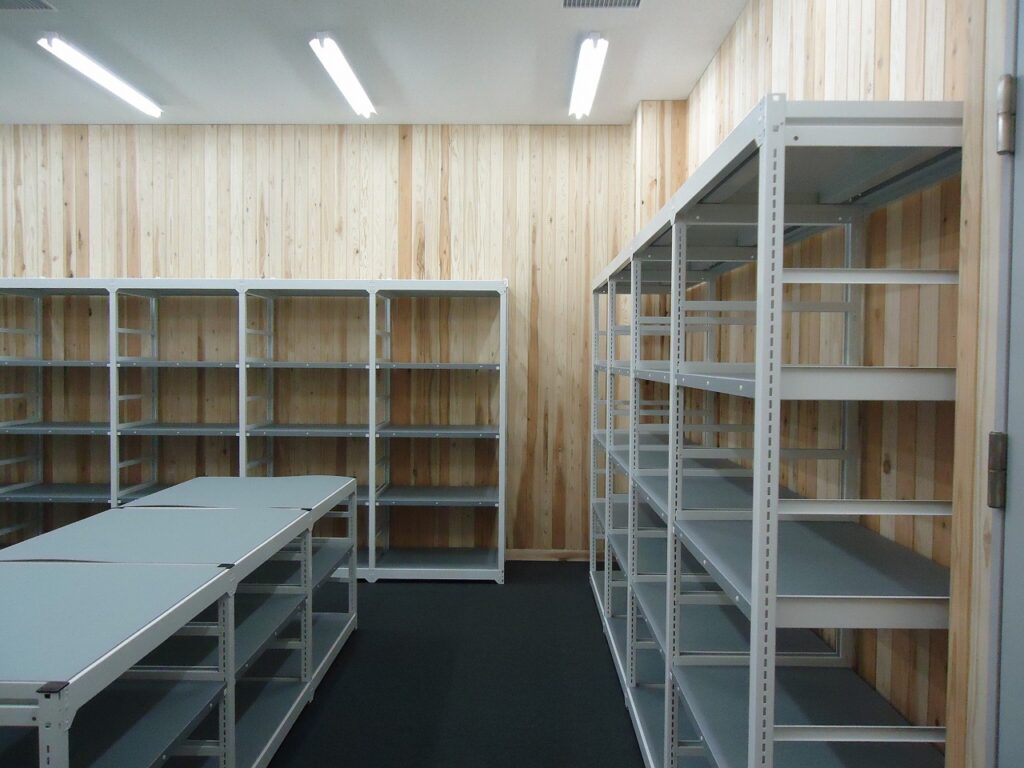 スチール棚板面に中性紙ボードを敷くことで中性紙が緩衝材となり、