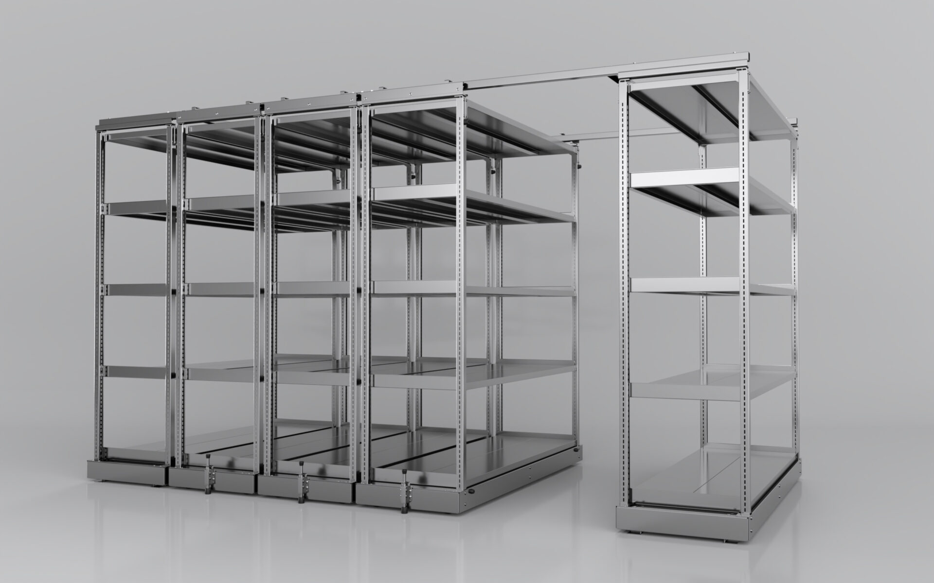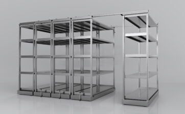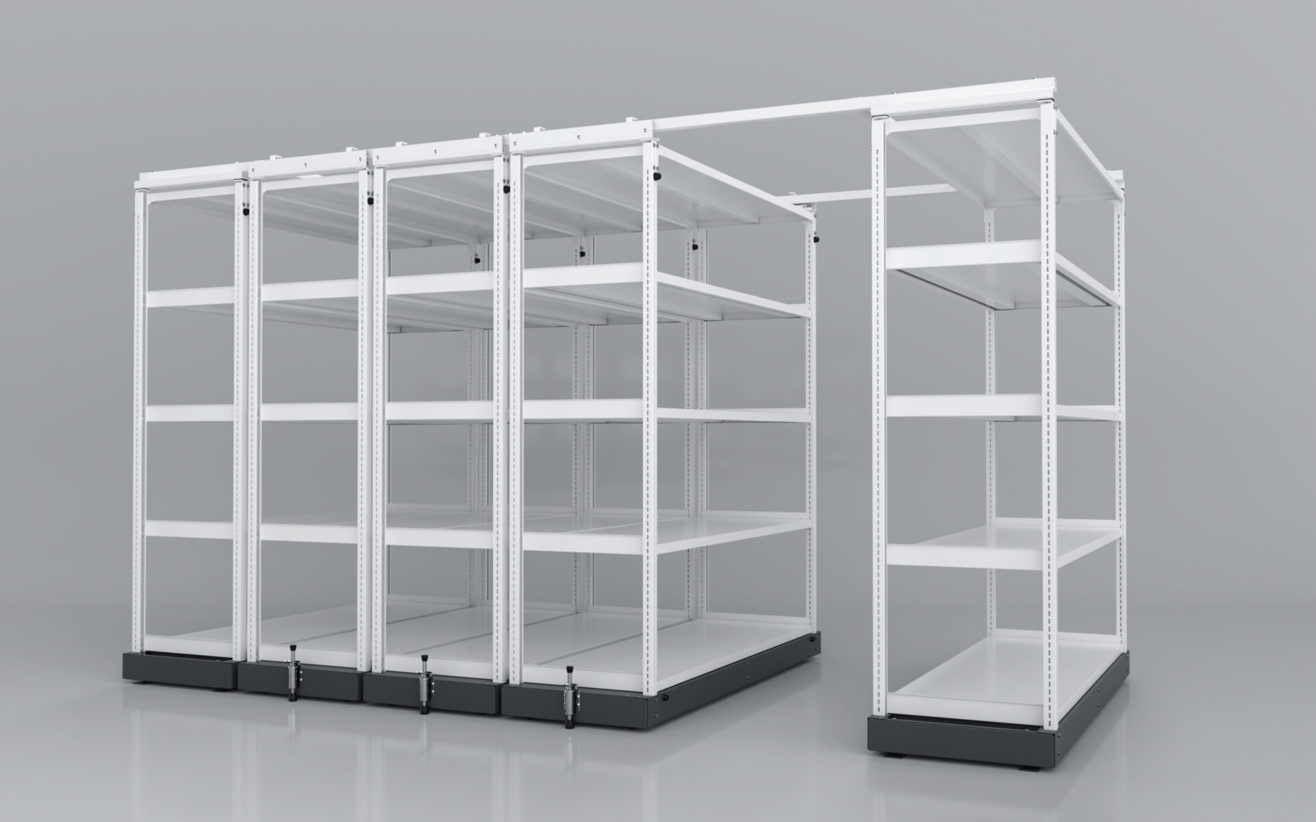 レールレス移動棚RLSは最大2連までですが、